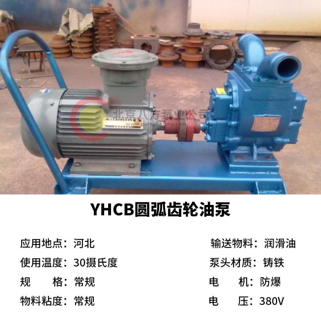 YHCB型圓(yuán)弧齒輪泵主要適用於輸(shū)送粘度在(zài)5-1500cst、溫度在80℃以下、不(bú)含固體(tǐ)顆(kē)粒(lì)、無腐(fǔ)蝕性的各種油類介質。 齒輪油泵 選擇特殊的(de)材(cái)質,可以(yǐ)起到防爆(bào)的作用。