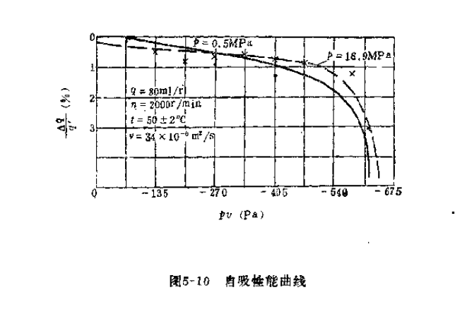 自吸性能曲線即(jí)排量下降率與吸油真空度(dù)的變(biàn)化曲線,如圖(tú)
